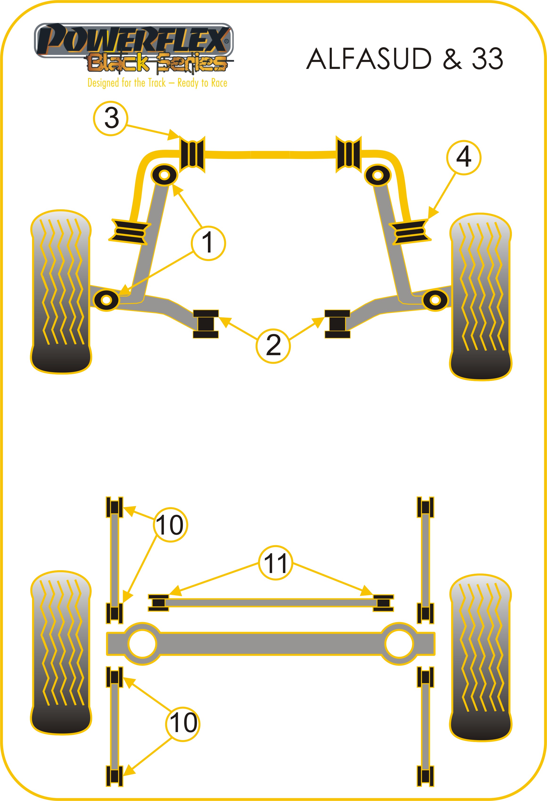 Powerflex-Buchse Black Series für Alfasud, Alfasud Sprint (1971-1989), 33 (1983-1995) Zugstrebe vorne