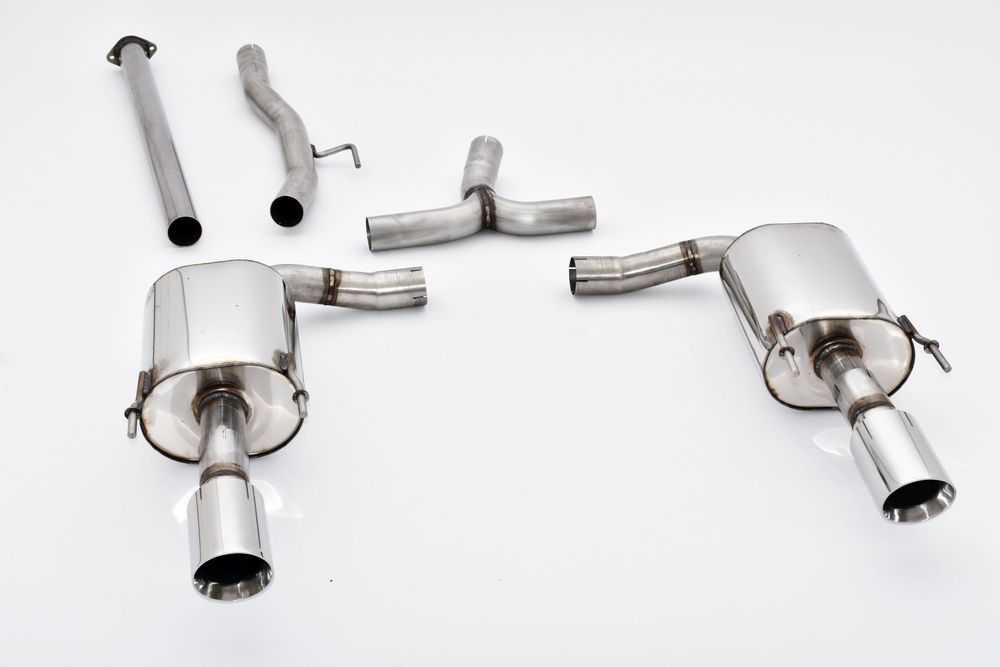 Diese Duplex Sportauspuffanlage von Friedrich Motorsport ersetzt den originalen Vor- und Endschalldämpfer.