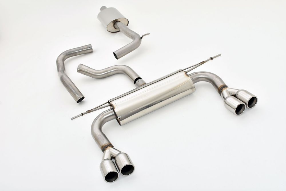 Diese Duplex Sportauspuffanlage von Friedrich Motorsport ersetzt den originalen Vor- und Endschalldämpfer.