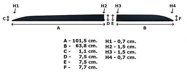- Maße: Set 4-tlg, 2x 1,1-7,5cm x 101,5cm + 2x 7,5-7,7cm x 63,8cm